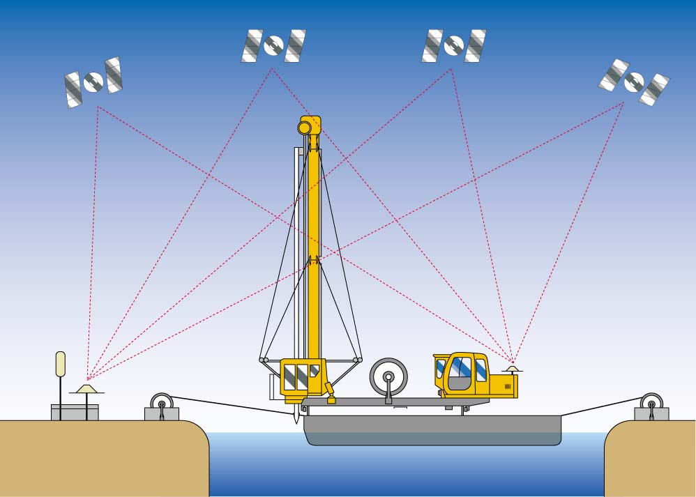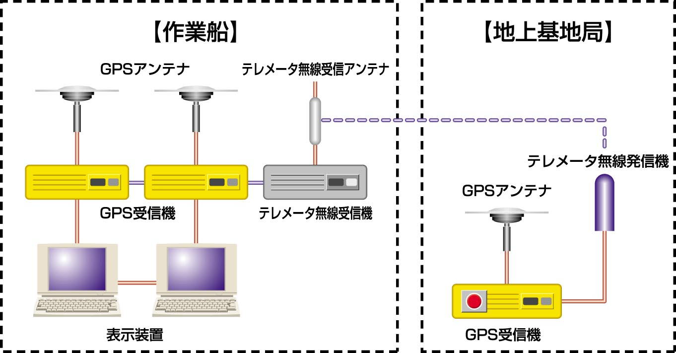 位置決めシステムは,GPSのリアルタイムキネマティック測位を応用したもので,打設機の位置・移動・方位・ズレ量を高精度連続測定し,誘導表示します。手順としては,まずフロートの位置決めを行い,その後鉛直ドレーン1本毎の打設位置管理をします。